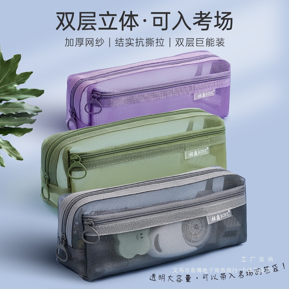 二層立体大容量筆箱透明メッシュ文具筆箱ポータブル大型筆箱ポータブル高校入試