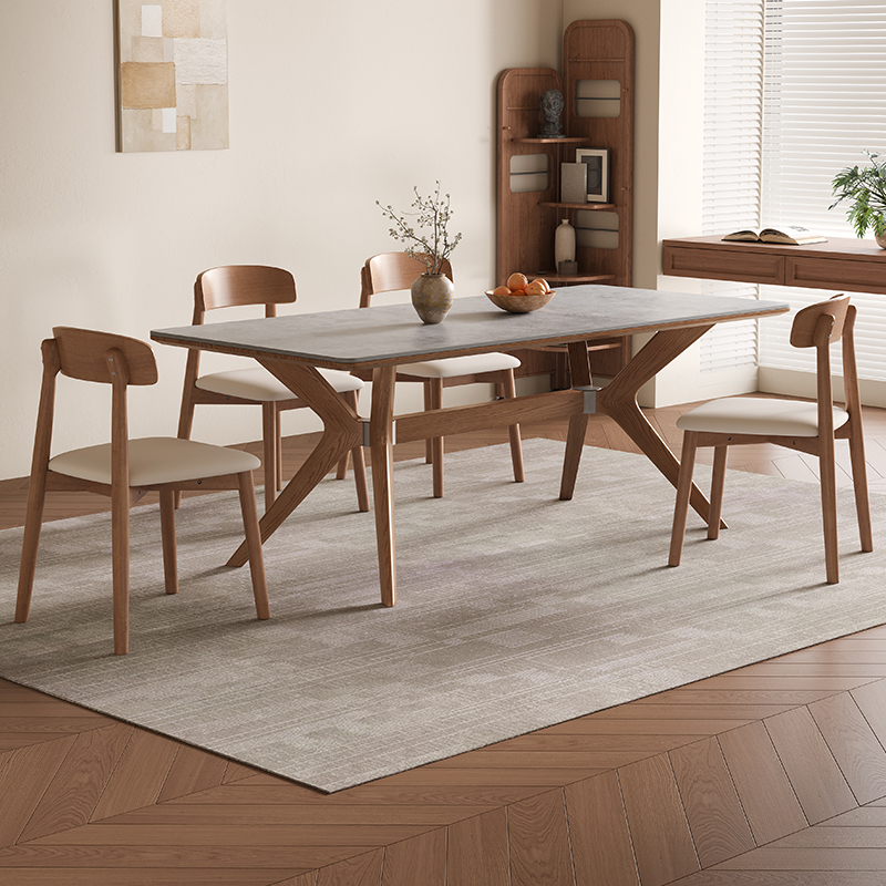 北欧無垢材スレートダイニングテーブル家庭用小型モダンシンプルラバーウッドX型脚ダイニングテーブルマットダイニングテーブル