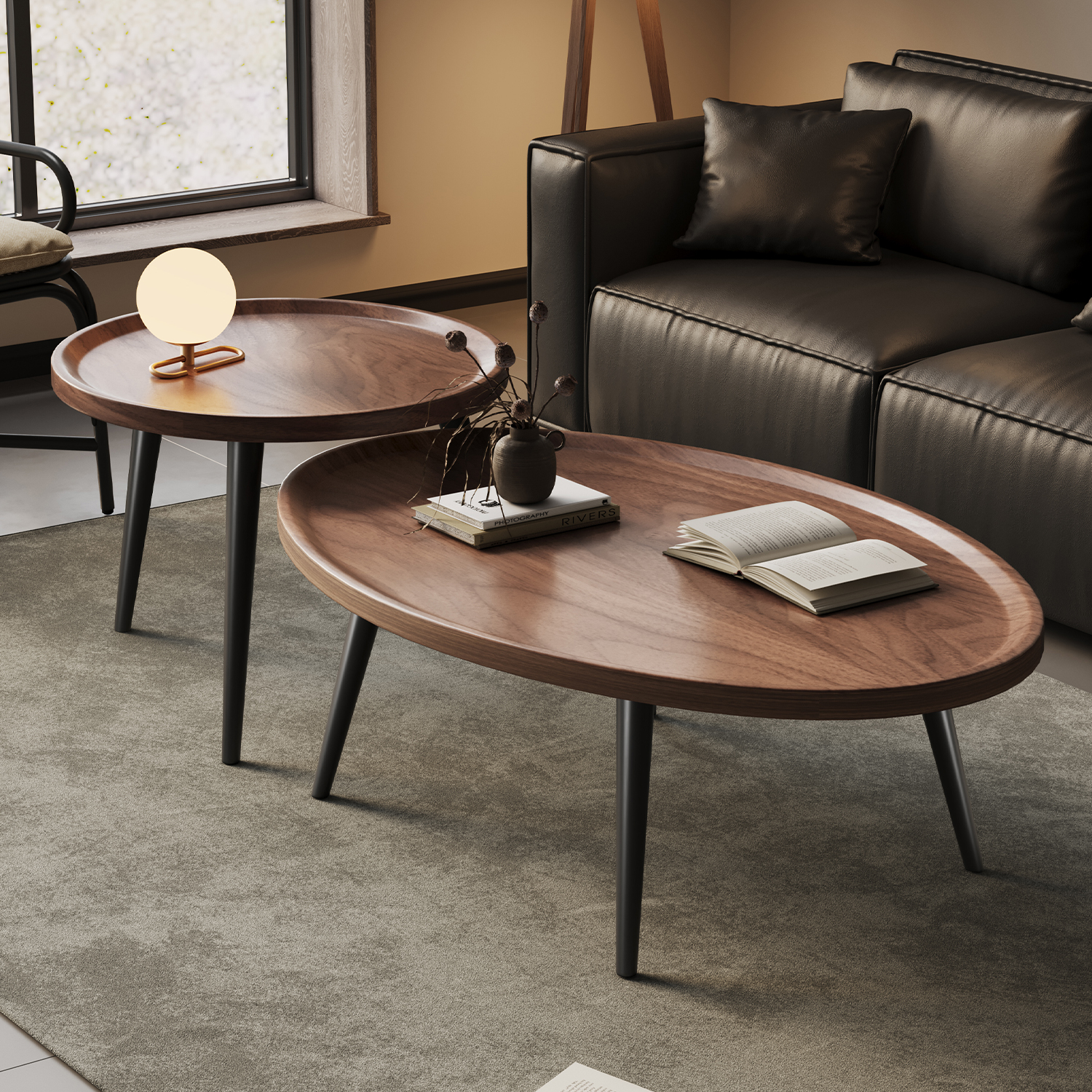 ラウンド無垢材スレートコーヒーテーブルインターネットセレブシンプルモダンな小さなアパート北欧コーヒーテーブルリビングルームソファサイドテーブル組み合わせ