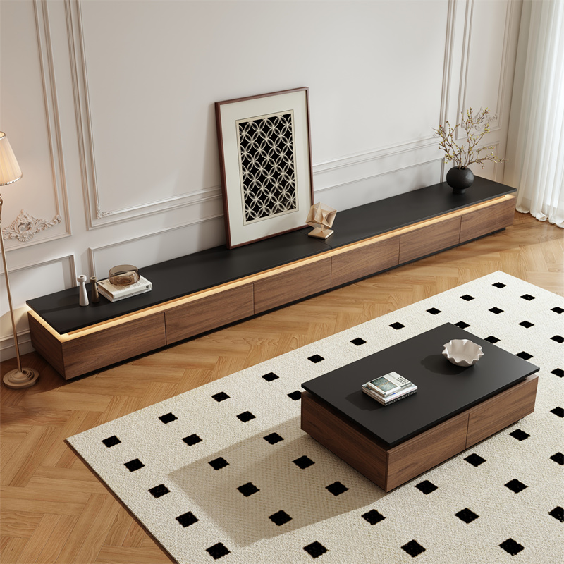 テレビキャビネット ウォールナット フロア収納キャビネット イタリアのミニマリスト リビングルーム ロックプレート スプライシング フロアキャビネット 収納キャビネット コーヒーテーブルの組み合わせ