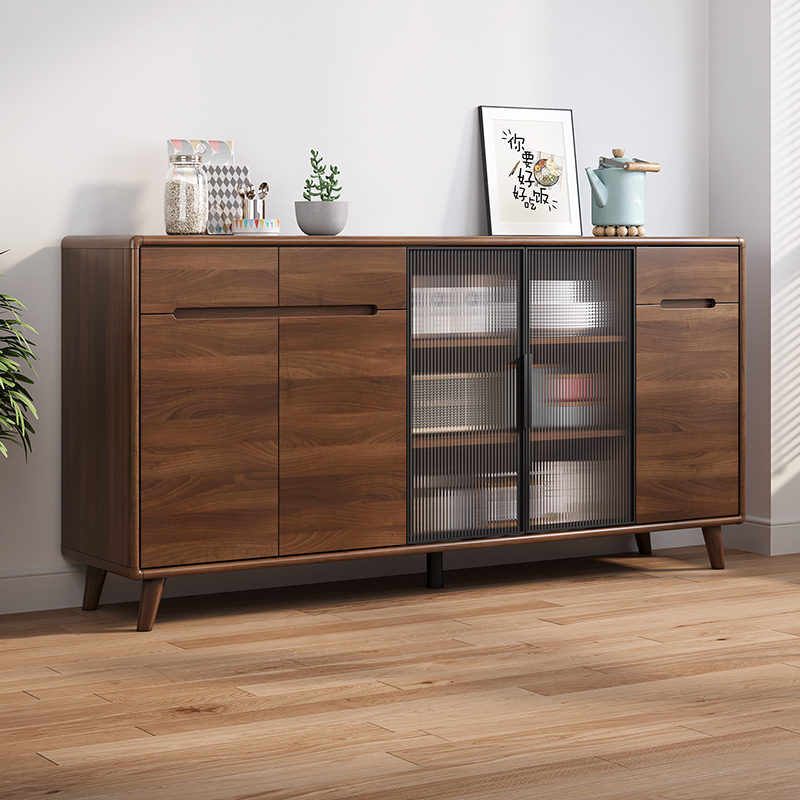 無垢材フレームサイドボード、モダンでシンプルなリビングルームワインキャビネット、ティーキャビネット、キッチン収納キャビネット、キャビネット収納、壁に一体化