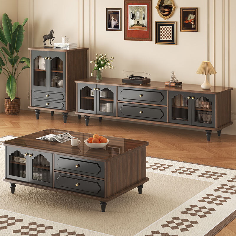 フレンチレトロ無垢材テレビキャビネットリビングルームホームフロアロッカー小さなアパートコーヒーテーブルコンビネーションサイドキャビネット収納キャビネット