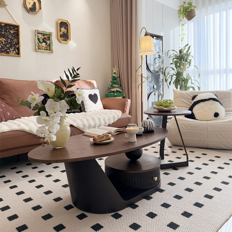 中世スタイルの無垢材コーヒーテーブルわびさびスタイルフレンチレトロホームリビングルーム小さなアパートデザイナーハイエンドティーテーブル