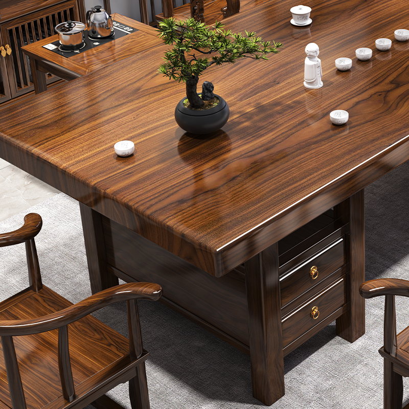 ティーテーブルと椅子の組み合わせオフィスホーム無垢材ティーテーブルカンフーティーテーブルテーブルティーセットセットオールインワンハイエンドティーテーブル