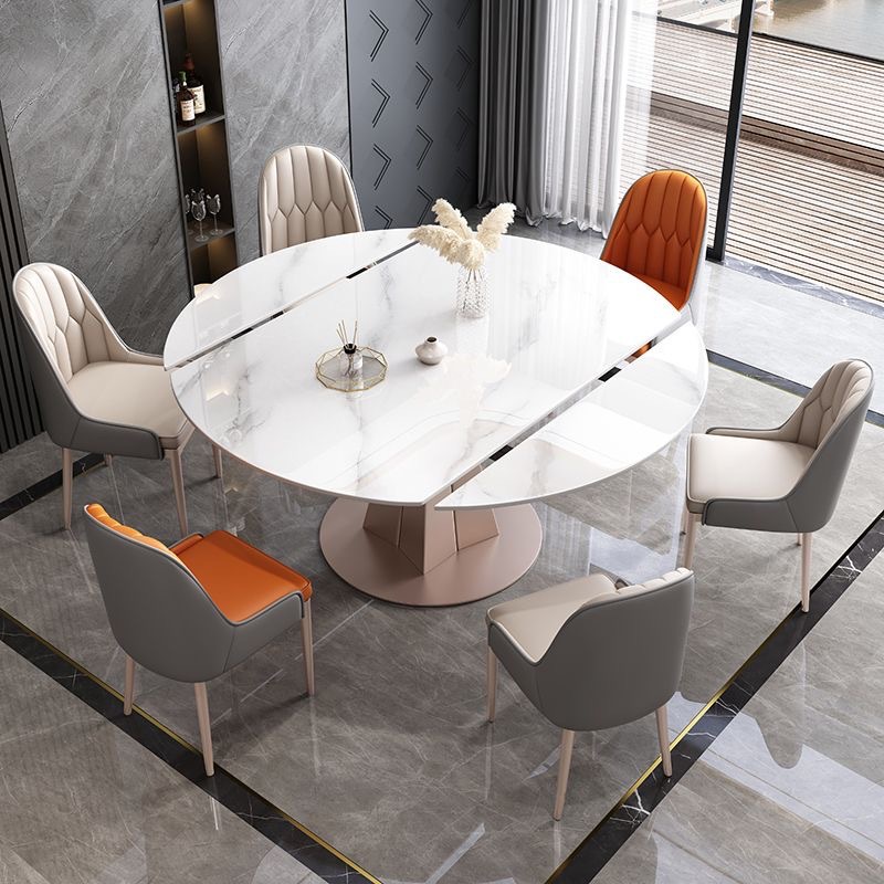 スレートダイニングテーブル家庭用小型アパート可変ラウンドテーブルライト高級モダンシンプル2025新しい伸縮式ダイニングテーブル