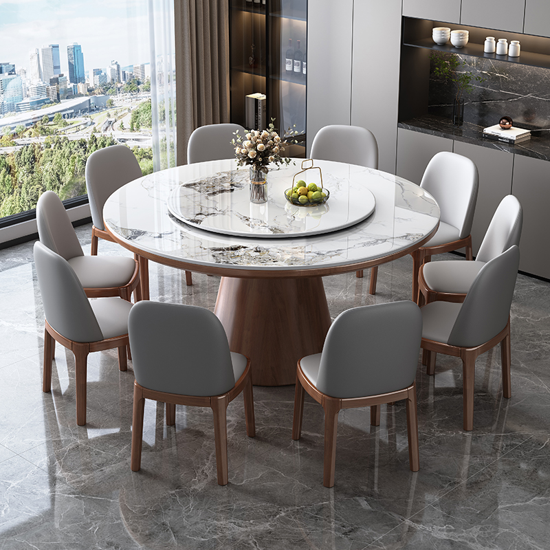 ラウンドダイニングテーブル、ターンテーブル付き光沢のあるロックプレート、ラウンドテーブル、ライトラグジュアリー、モダンでシンプル、家庭用大小のダイニングテーブルと椅子の組み合わせ