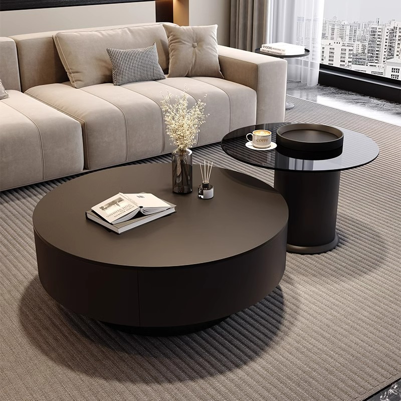 イタリアのミニマリストライト高級ラウンドスレートコーヒーテーブルリビングルームホーム小さなアパートシンプルなサイズのラウンドコーヒーテーブル組み合わせガラス