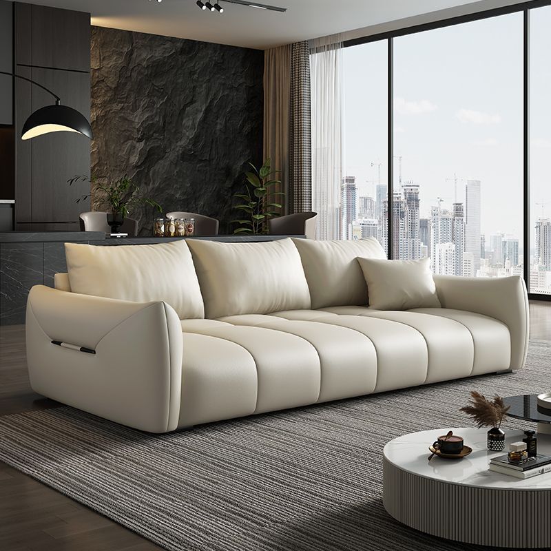 イタリアのミニマリストクリームスタイルのファブリックソファ、小さなリビングルーム、モダン、シンプル、ライト、豪華な3人用ストレートセーリングソファ