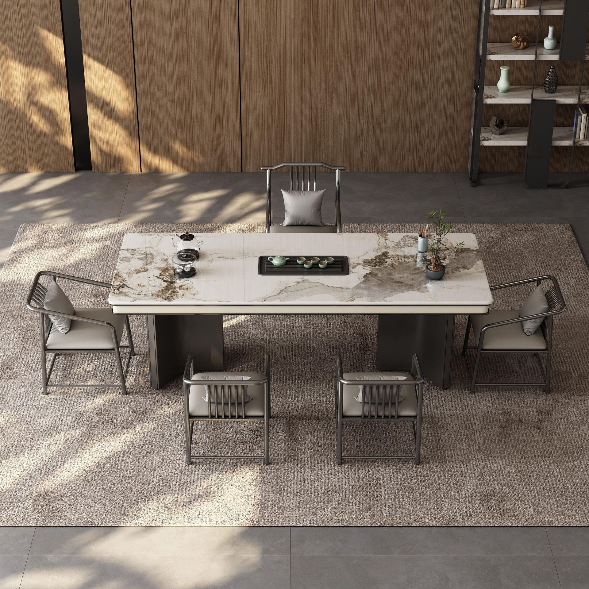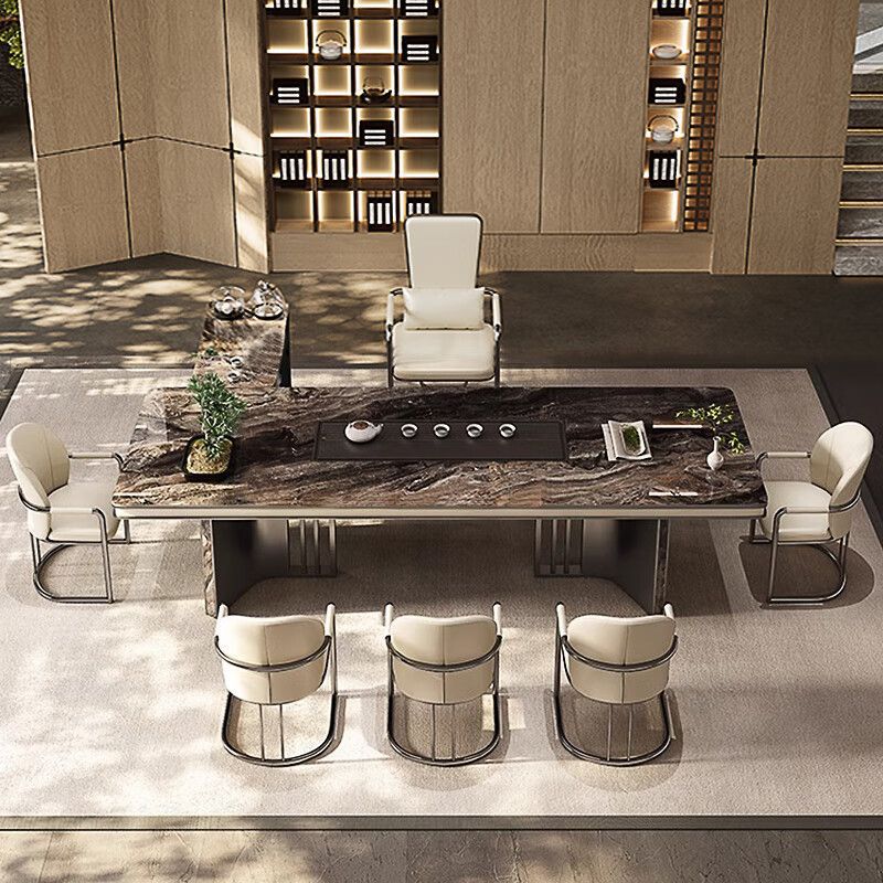 高級石岩板ティーテーブルと椅子の組み合わせカンフーティーテーブルケトル一体型モダンライト高級ハイエンドオフィス大型ボードテーブル