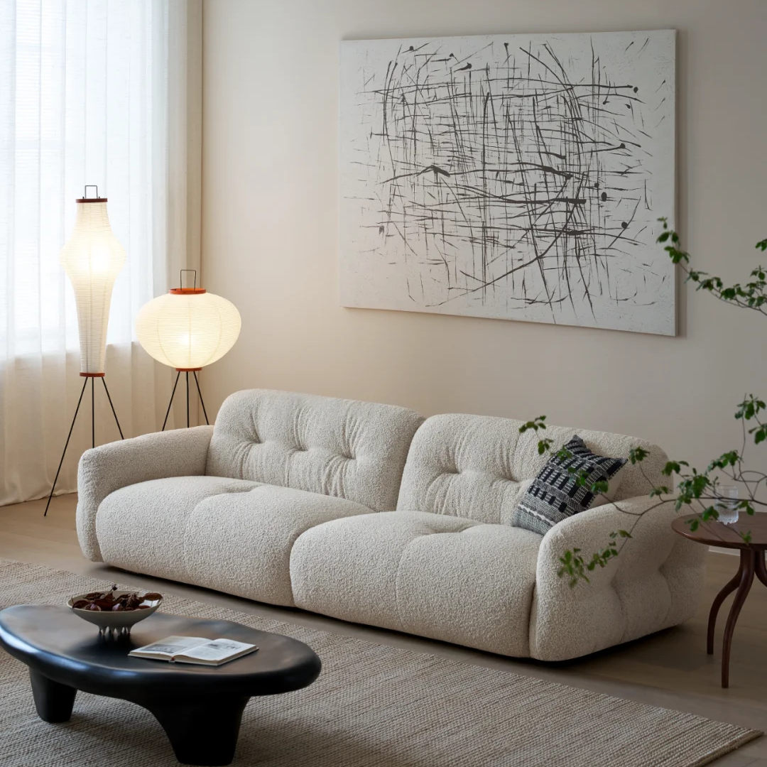 2025 新しいクラウドソファフレンチクリームスタイル小さなリビングルームモダンシンプルなラムベルベットファブリックソファ