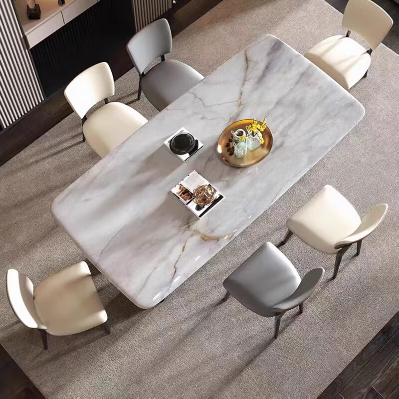 ライトラグジュアリースーパークリスタルダイニングテーブル大理石椅子組み合わせハイエンド天然高級石長方形カラークリスタルマイクロクリスタルテーブル