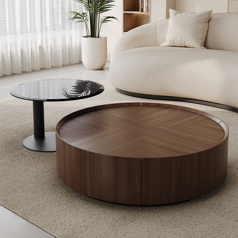 イタリア式の簡単な豪華な実木のお茶のいくつかの家庭用の小戸型は簡単で、現代の胡桃木のネットの赤いサイズの円形のお茶のいくつかの組み合わせです。