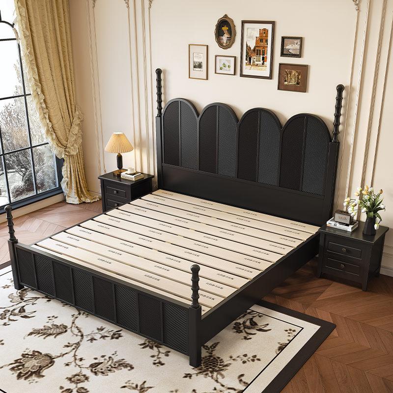 フレンチ無垢材ベッド、ライトラグジュアリー、ローマンコラムプリンセスベッド、ミッドセンチュリースタイルのダブルベッド、モダンでシンプルなアメリカン収納ウェディングベッド