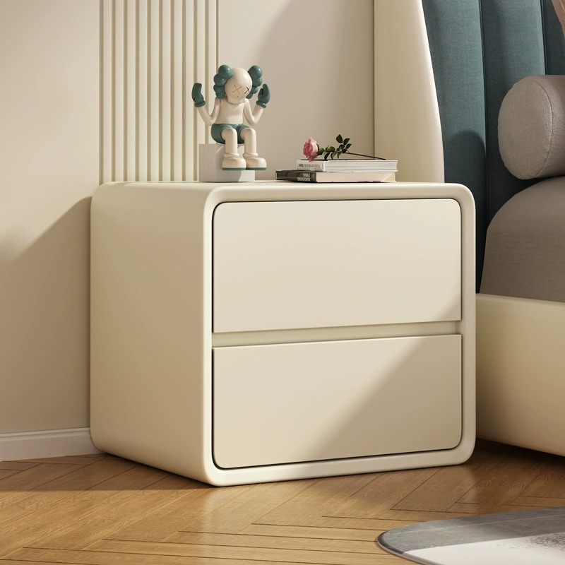 無垢材のベッドサイドテーブル、シンプルな取り付け、モダン、小型、軽い、高級、ハイエンド、クリーム、寝室の収納、家庭用ベッドサイドテーブル
