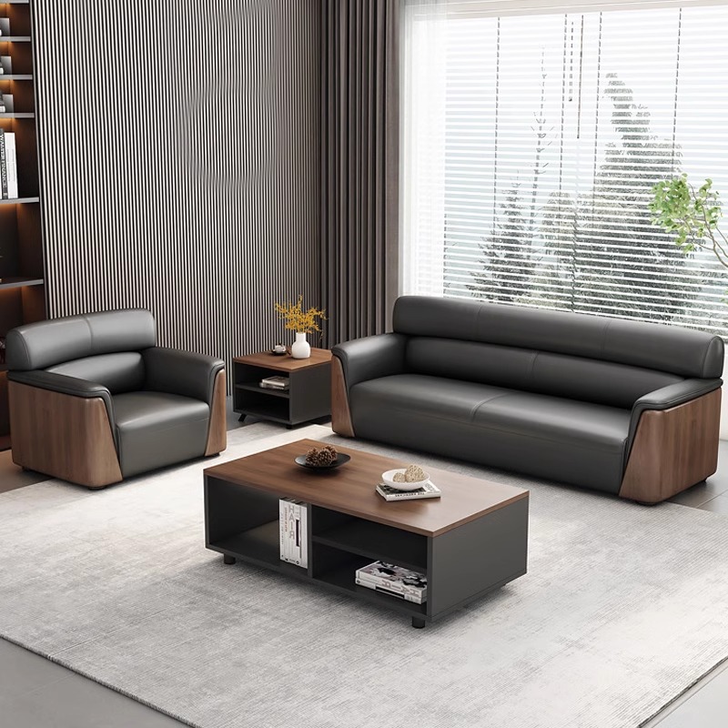 オフィスソファ無垢材受付銀行会議室コーヒーテーブル組み合わせシンプルモダンレザーアートビジネス休憩エリア