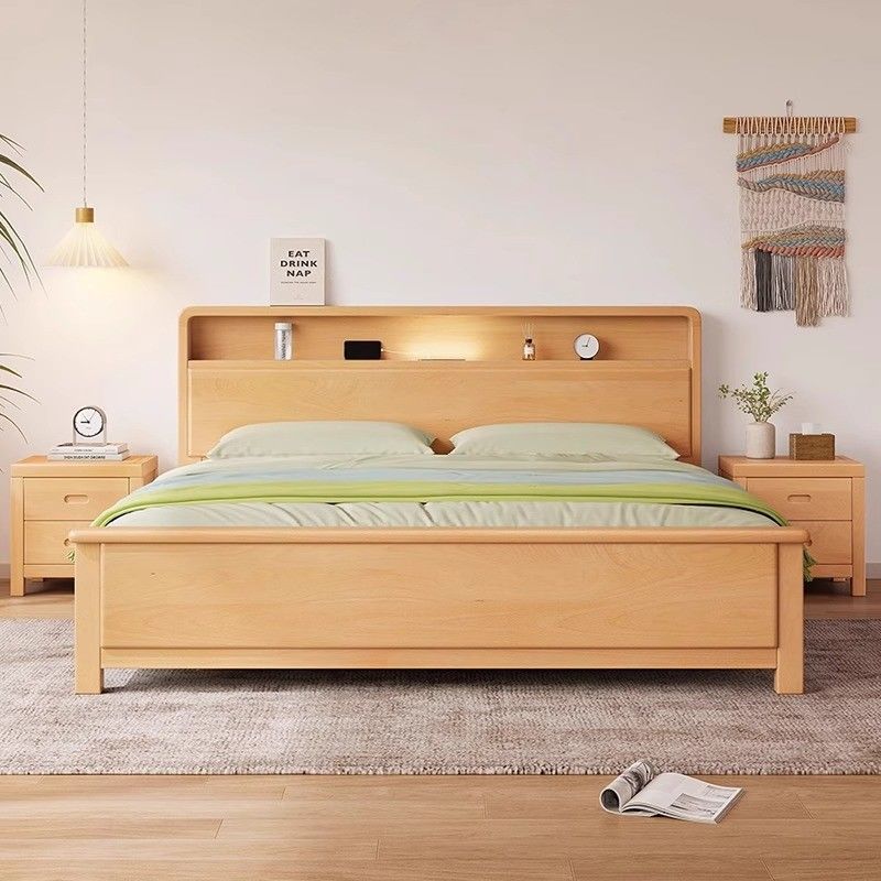 フルブナ無垢材ベッド シンプル 1.35m 木の色 ブナ材ベッド マスターベッドルーム 北欧 1.2m ベッド 収納