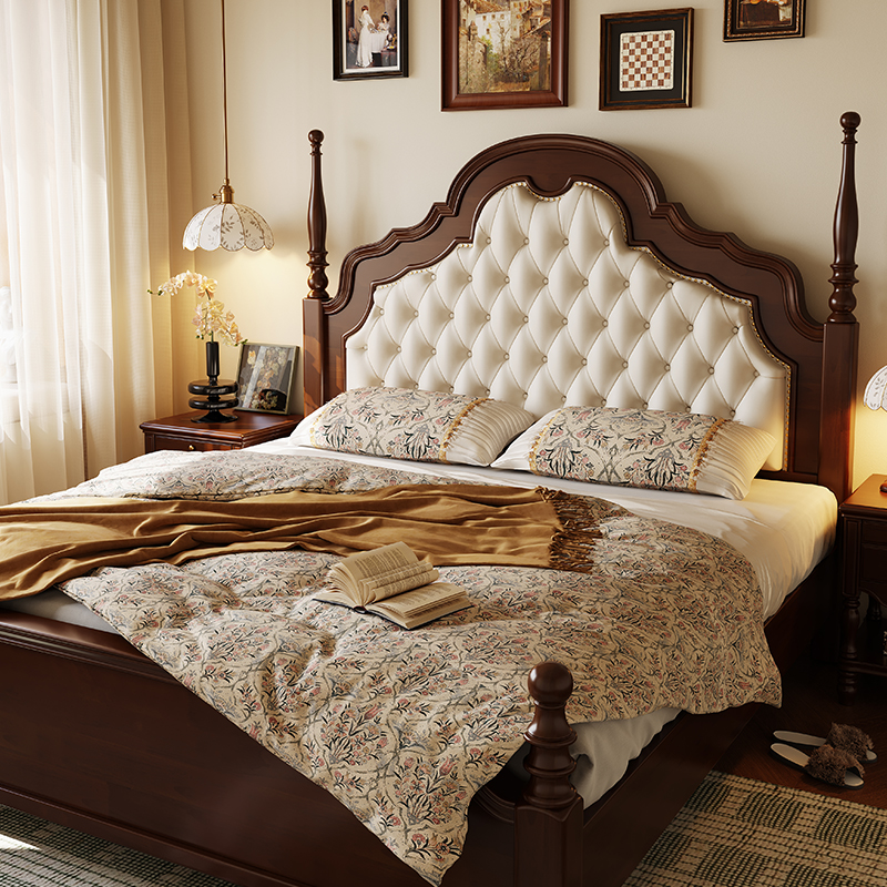 レトロアメリカン無垢材ベッドダブルベッドシンプル1.5m1.8Mソフトパッケージアンナベッドフレンチベッドルームウェディングベッド