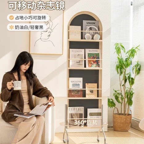 クリーム風全身鏡移動回転着鏡寝室試着鏡客間雑誌棚家庭用着地鏡