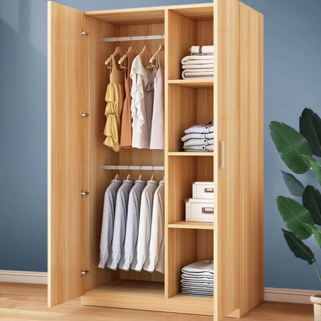 ワードローブホームベッドルームシンプルモダン多機能無垢材収納キャビネットシンプルな組み立て両開きドアレンタルルームワードローブ
