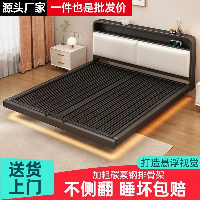 鉄製ベッドダブルベッド家庭用ステンレス吊り下げ鉄フレームベッド太く厚いスチールフレームベッド現代シンプル懸濁ベッド