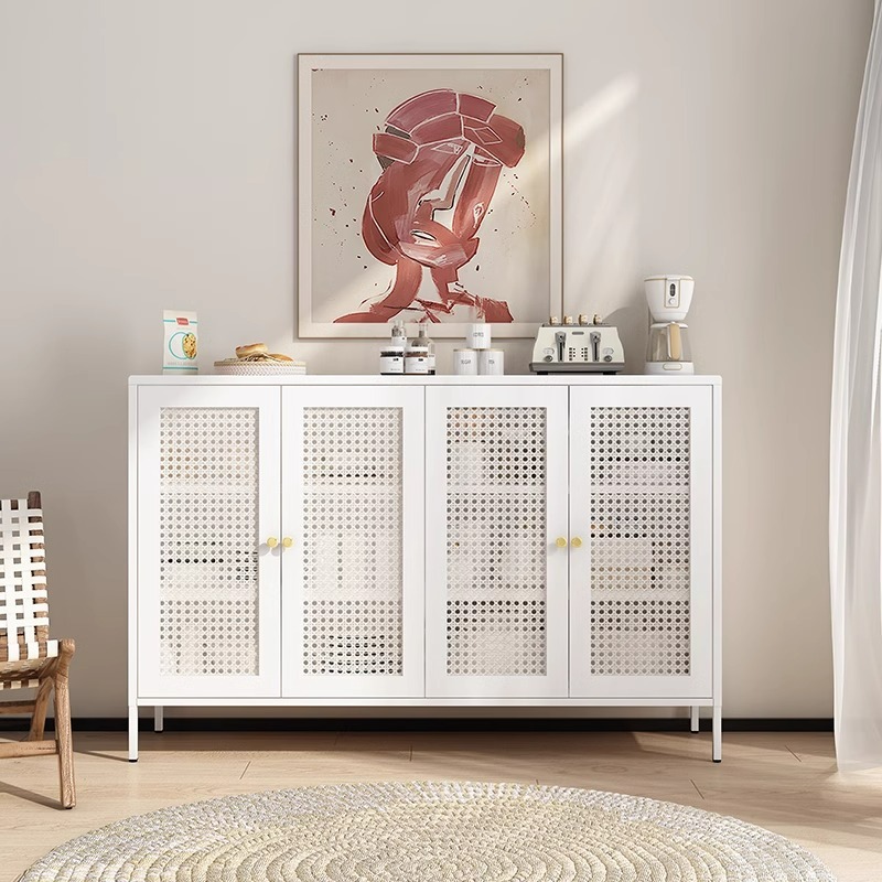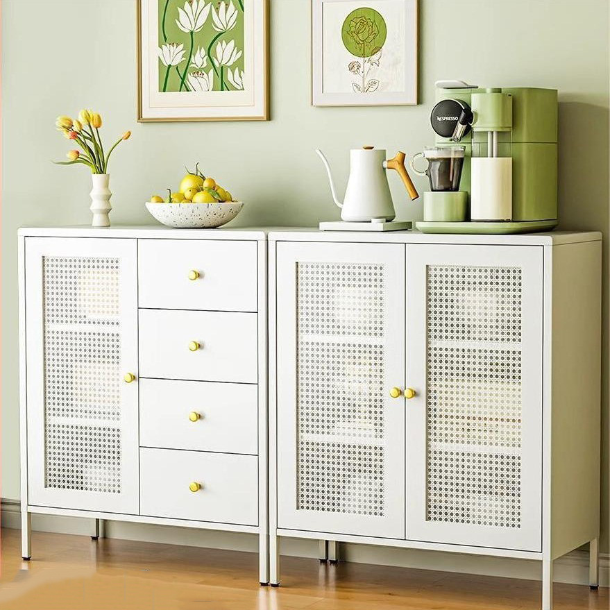 クリーム風藤編サイドキャビネット家庭用キッチン収納キャビネットリビングサイドキャビネット収納キャビネットスチール製キャビネット