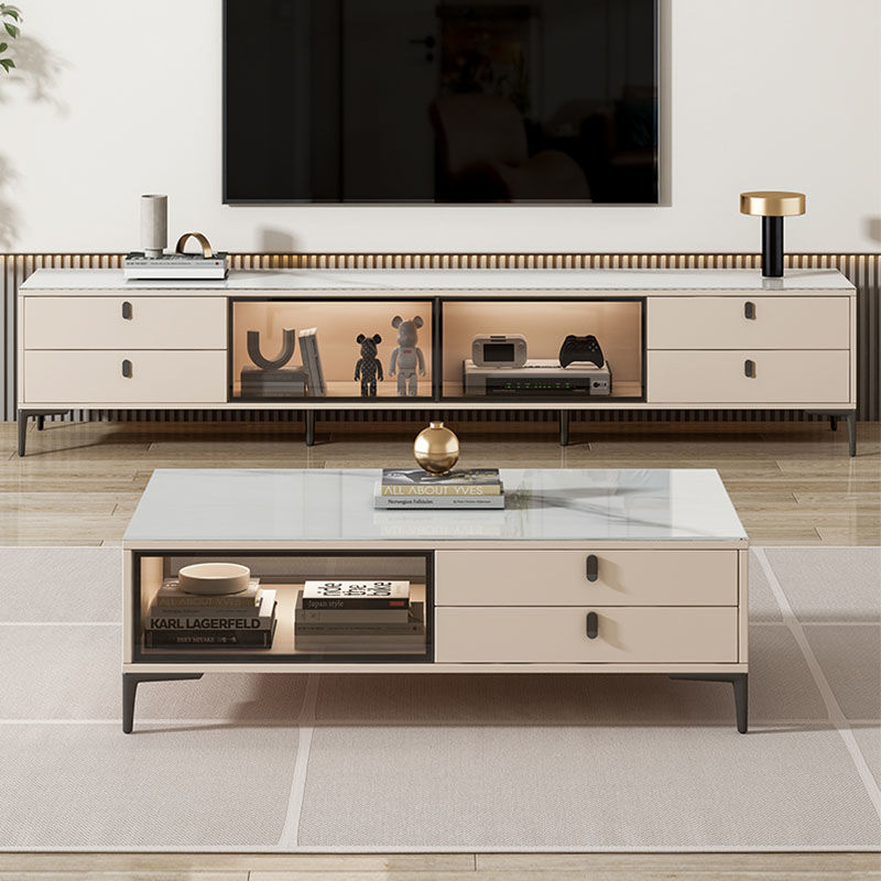 強化ガラスのテレビの棚のお茶のいくつかの現代風のリビングルームの家庭用の小さい部屋型の床置き式の軽い豪華なテレビのキャビネットの組み合わせ