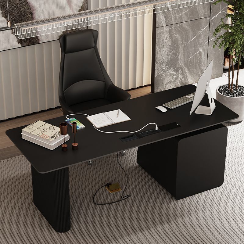 高級岩板事務机のイタリア式の極めて簡単な小戸型の机の現代の軽い豪華な設計感の黒色のボスのコンピュータの机