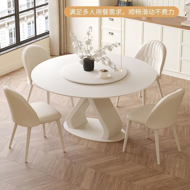 クリーム風岩板食卓と椅子の小戸型家庭用岩板現代シンプルで贅沢な円形食卓と椅子の組み合わせ
