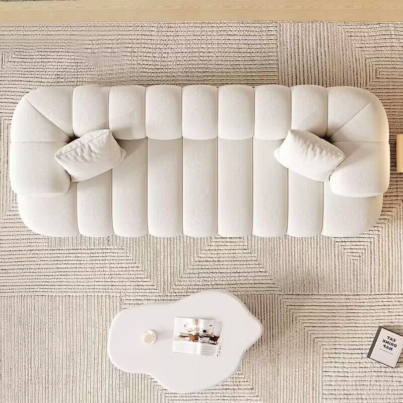 フランスクリーム風ソファーマシュマロ布芸ネット赤小戸型客間寝室二人三人羊小毛ソファー