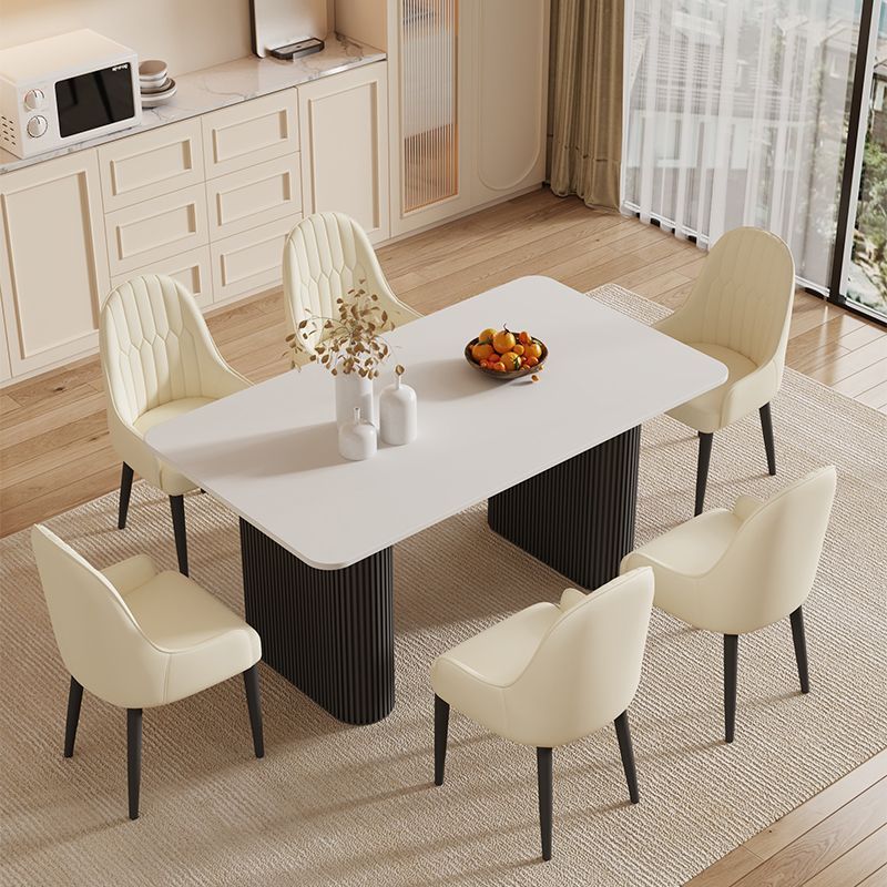クリームスタイルのピュアブラックロックボードダイニングテーブルとダイニングチェアの組み合わせモダンでシンプルな小さなアパート家庭用半円形ダイニングテーブル