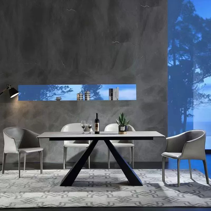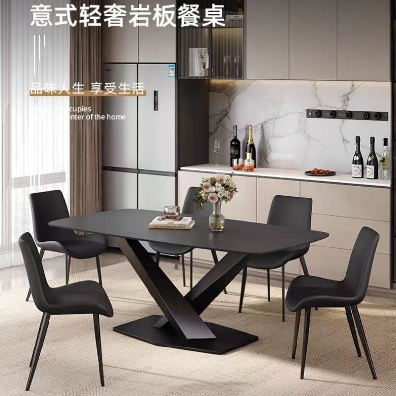 軽豪華岩板食卓黒色x型脚食卓家庭用食卓椅子2024新型高級食卓シンプル現代