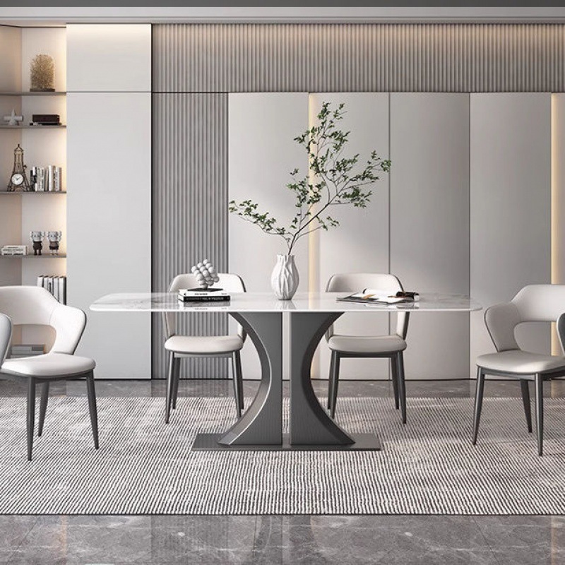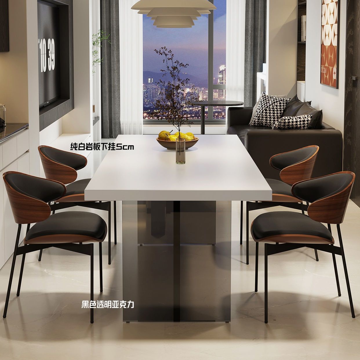 きわめてシンプルな岩板食卓と椅子現代シンプルで高級感のあるデザイナーモデルの長方形の小戸型家庭用の豪華な食事台