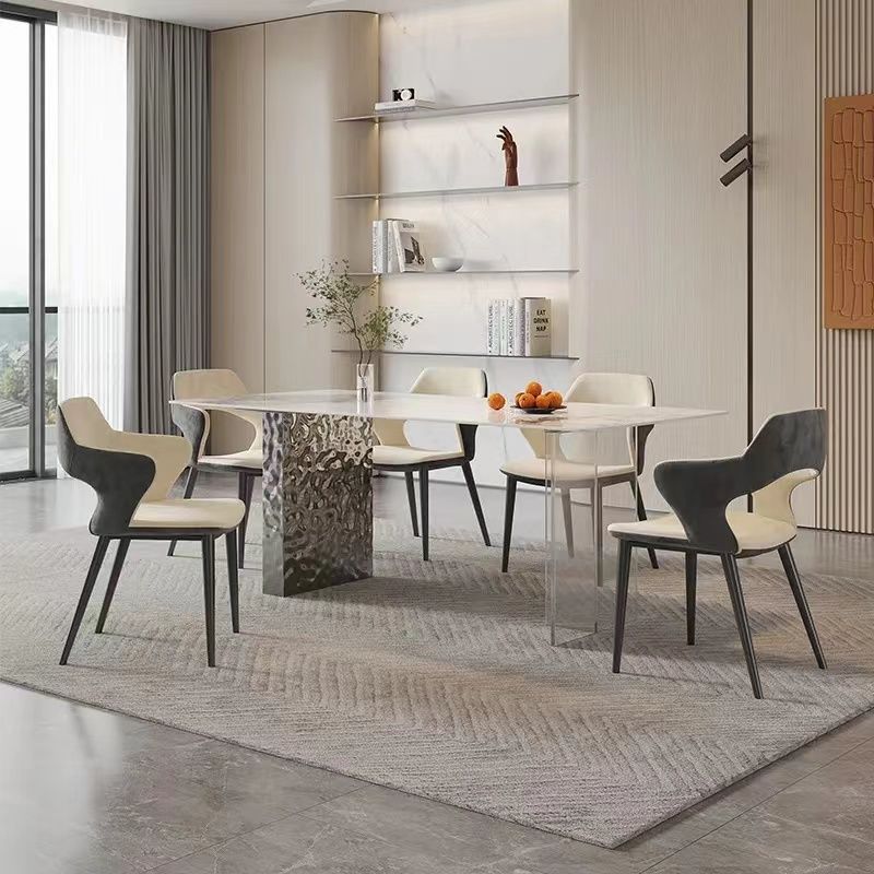 新型アクリル岩板食卓ステンレス水波紋透明懸濁極簡テーブルと椅子の組み合わせ長方形島台