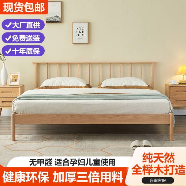 シンプルな現代の実木ベッドウィンザー北欧の一メートル五一メートル八大シングル二人で部屋を借りるのは実ケヤキの木のベッドです。