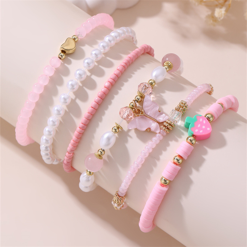 国境を越えた欧米の子供のブレスレット蝶いちご軟陶米珠水晶ブレスレットセットの女の子のアクセサリー