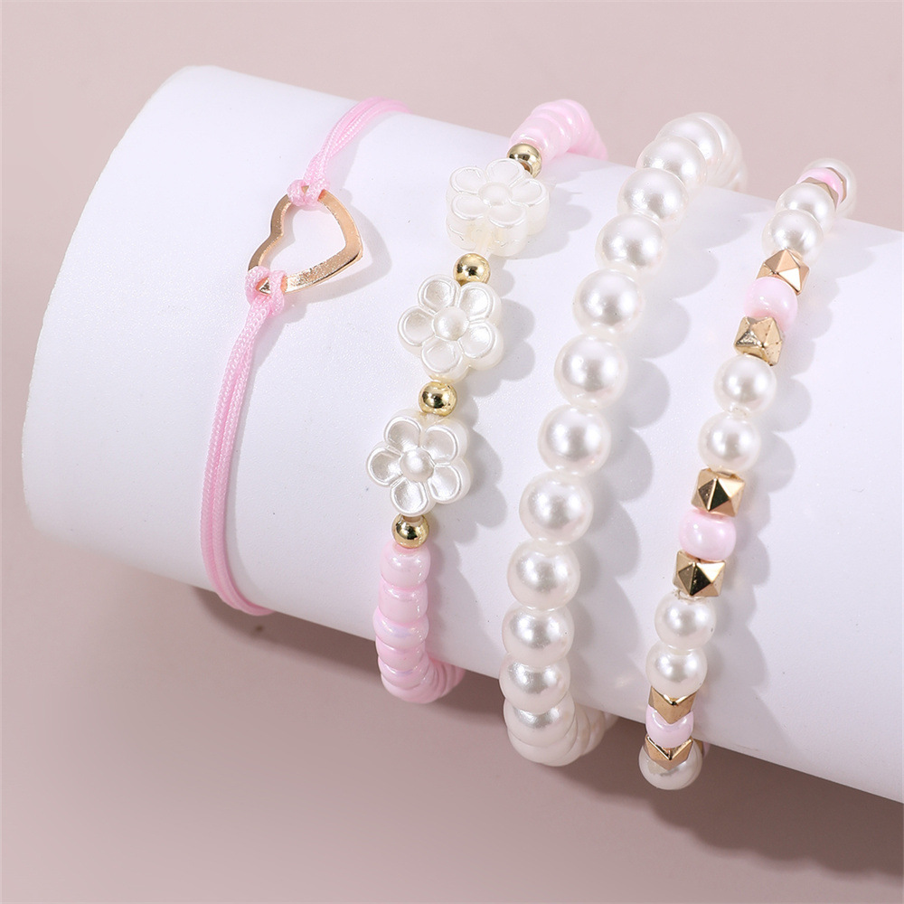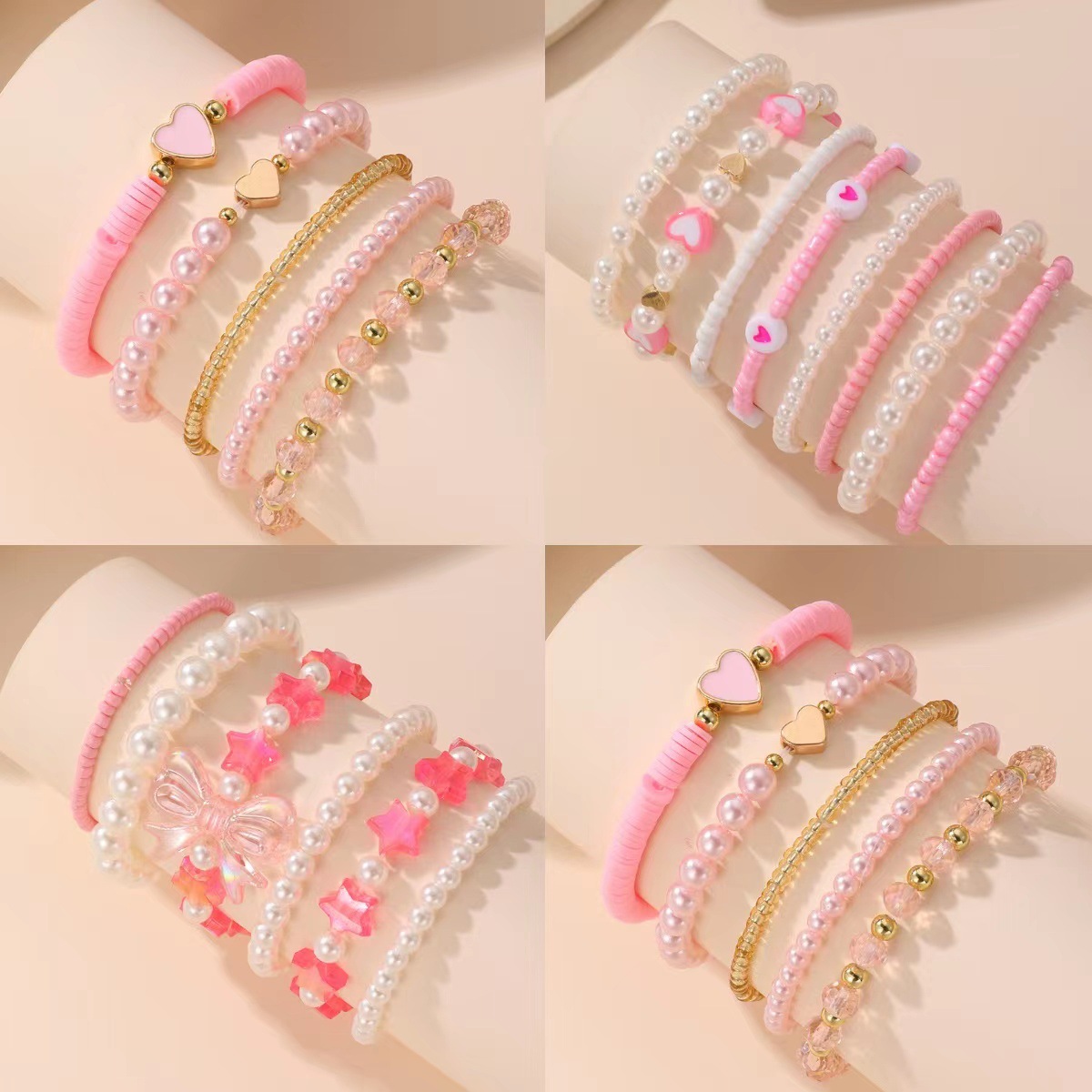 国境を越えた新しい手飾りの甘い風は真珠の米の玉の手作りの数珠の愛の蝶結びの五角星の子供のブレスレットに似せます。