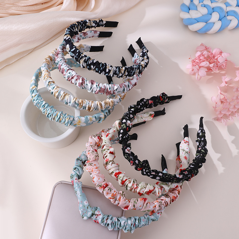 国境を越えた少女韓国のレトロなinsの花のしわが広い布芸のカチューシャ夏のシンプルな森系のカチューシャの髪飾り