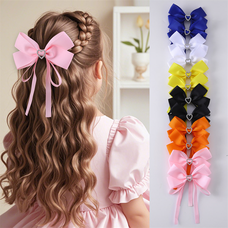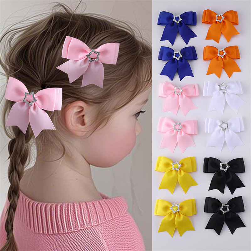 国境を越えた欧米の子供の二重の蝶結びのヘアピンの新しい色のリボンの五角星はダイヤモンドの女の子のヘアアクセサリーを入れます。