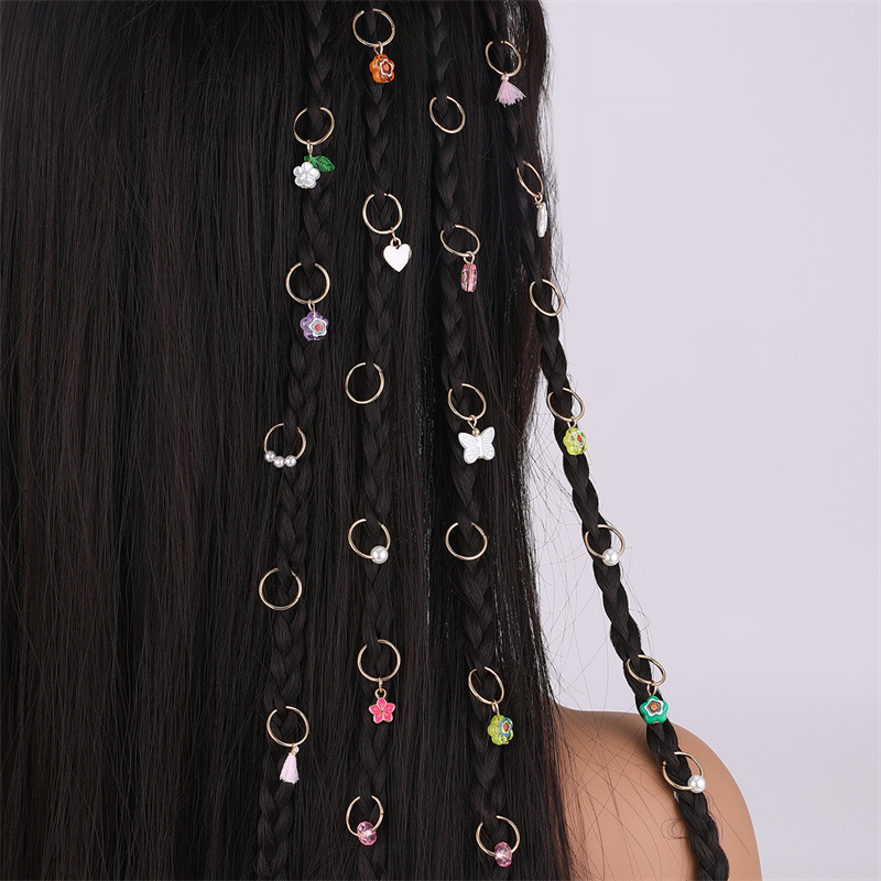 欧米の国境を越えたinsパンク街で流行しているお下げの髪飾りの女性金属の汚れたお下げの髪に甘いクールなギャル風の髪飾りがついている