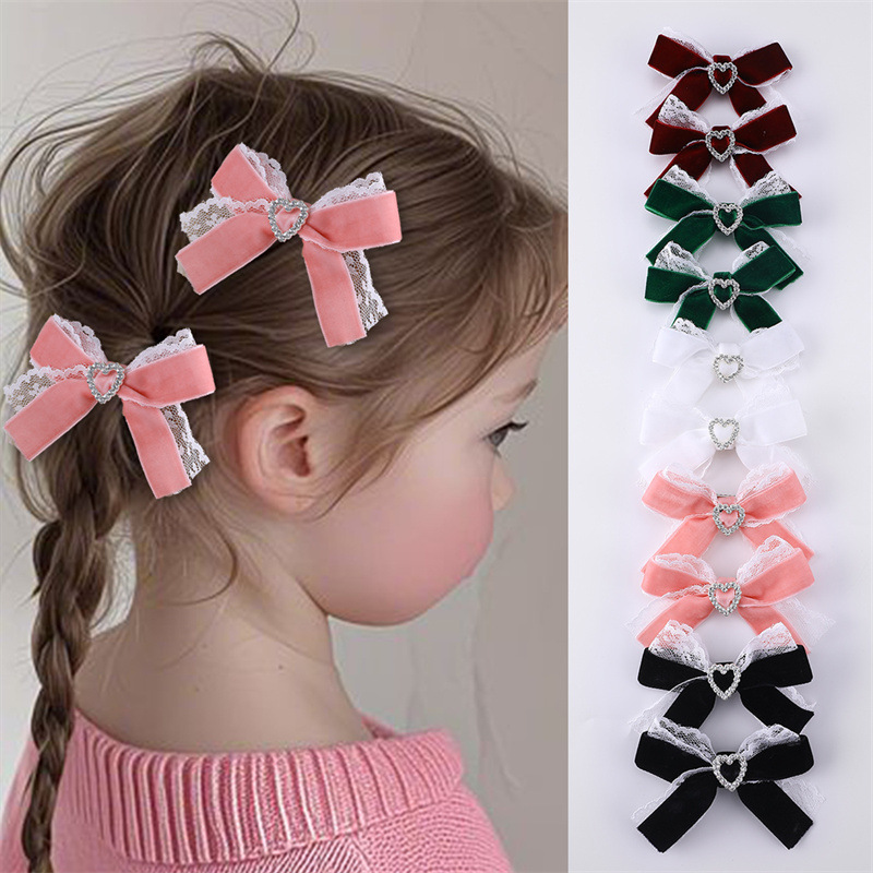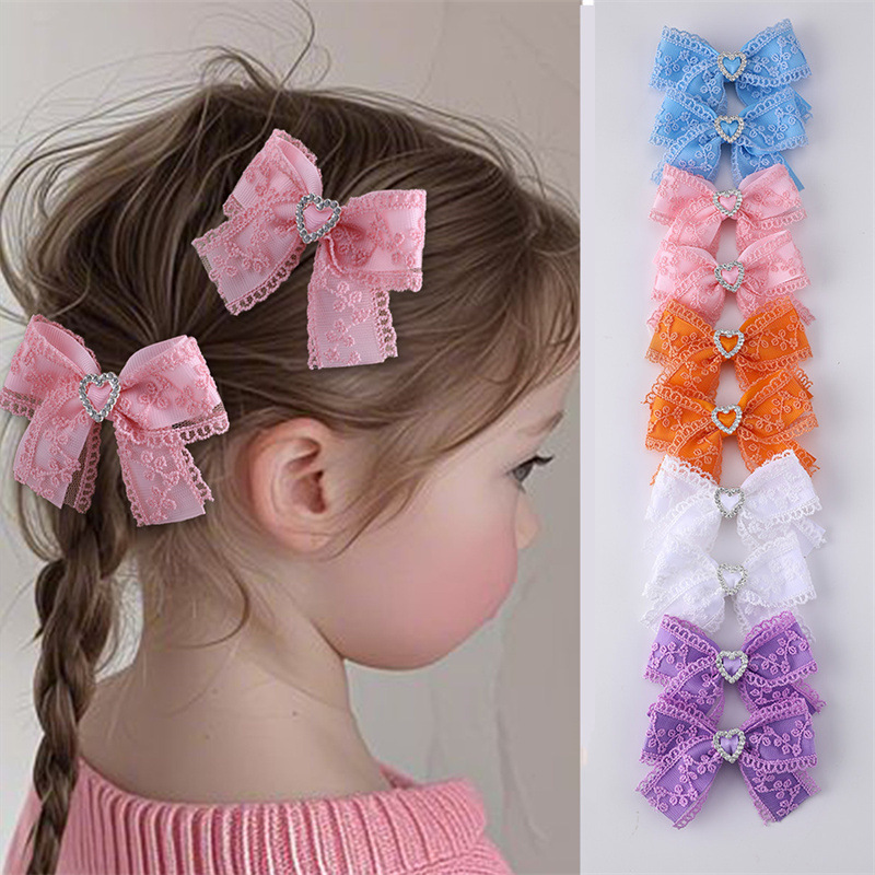 国境を越えた欧米の女の子の蝶結びレースの髪飾り金属には、愛の短いタイプの子供のサイドクリップのヘアピンのセットが入っています
