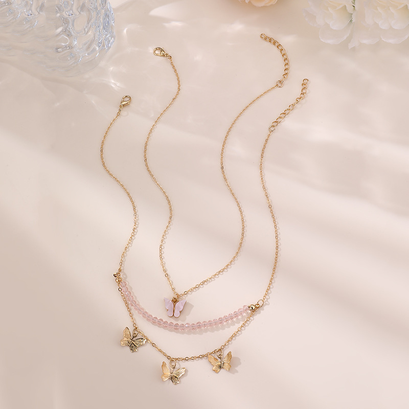国境を越えた欧米の蝶のペンダントの2つの組み合わせのセットの女の子のかわいい甘い鎖の子供の首の鎖の装飾品