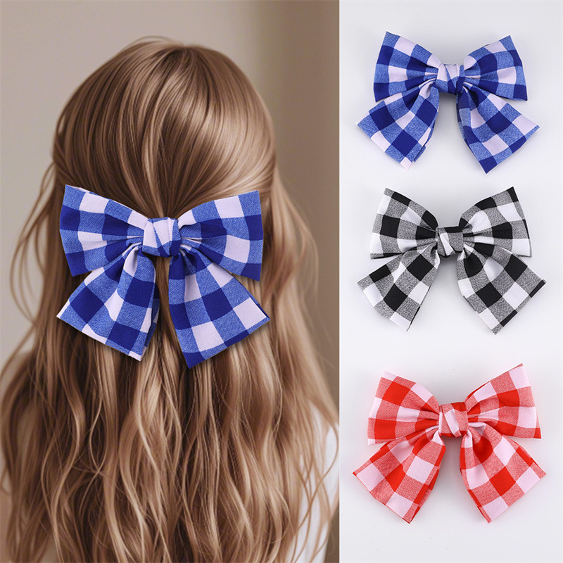 春には小さな清新な布芸の大きな格子の蝶結びの縁にレースの髪を挟みます。