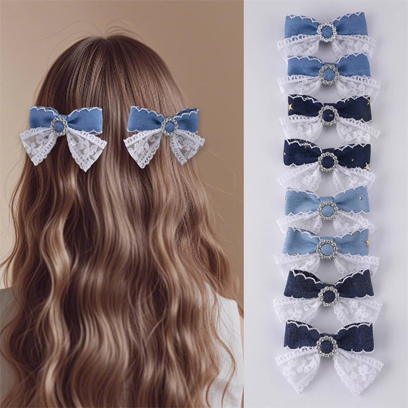 国境を越えた欧米の箔押し五角星デニムの蝶ネクタイレースのアヒルの口は女の子の側に髪を挟む