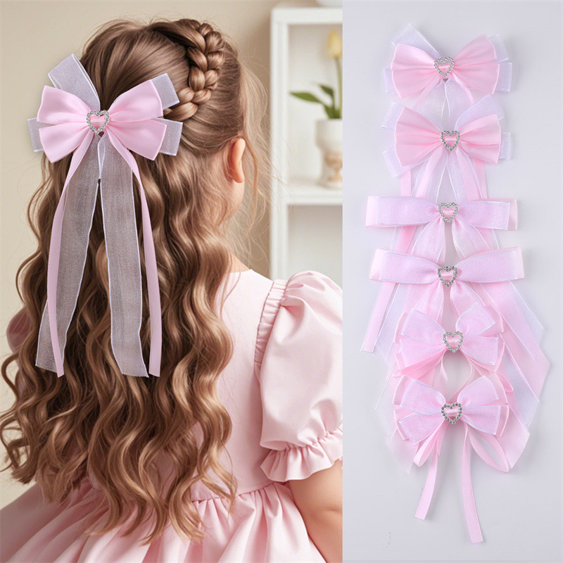 国境を越えた欧米の女の子の二重の蝶結びのピンク系の髪飾り