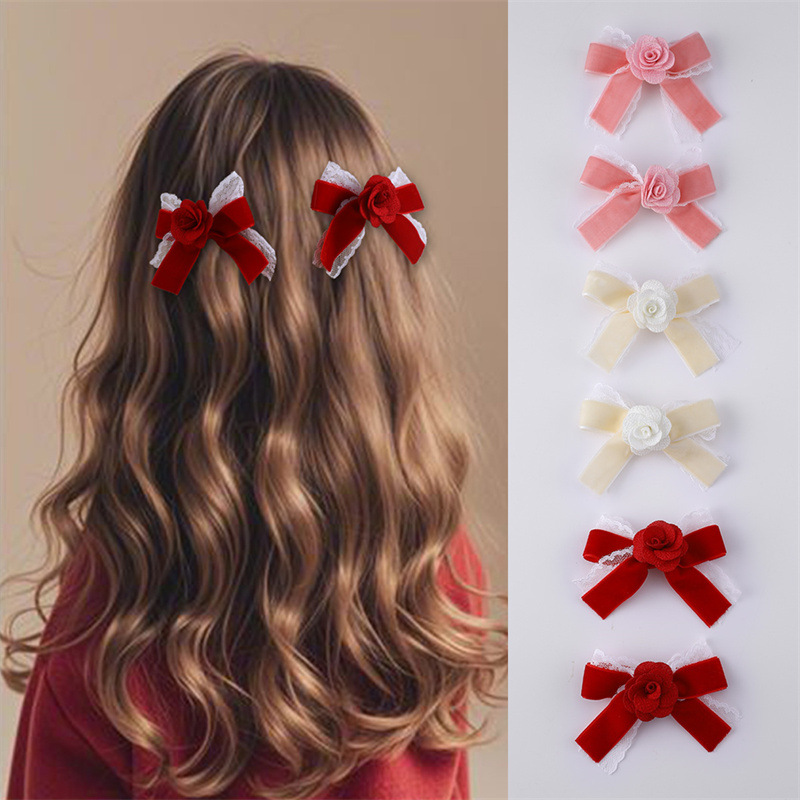 国境を越えた欧米の女の子の蝶レースの馬尾のヘアピンのバラの花のかわいい青春系の子供のサイドクリップの髪飾り