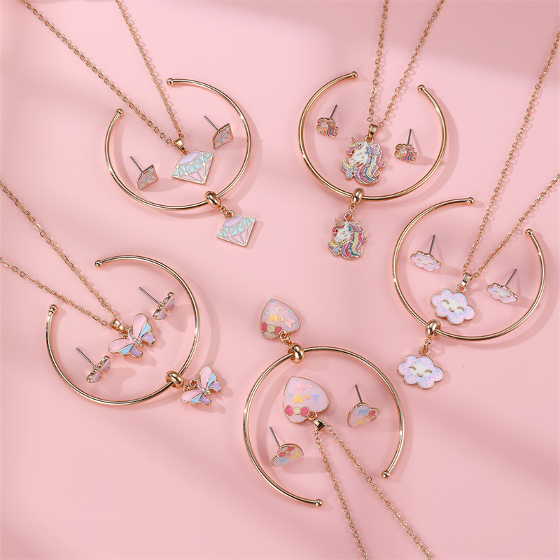 クロスボーダー欧米子供ジュエリーセット雲ペンダントブレスレットピアスネックレス漫画滴油合金ペンダントアクセサリー