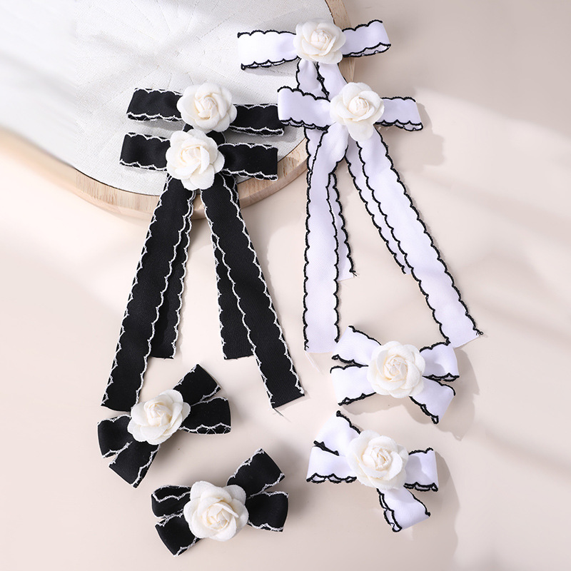 国境を越えた欧米の白黒の新型のリボンの蝶結びのアヒルの口は女の子の髪飾りの白い花卉の子供のサイドクリップを挟みます。