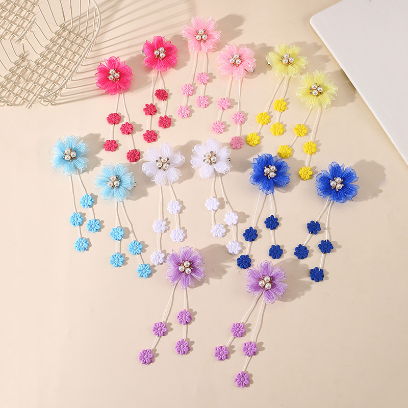 越境欧米の子供のヘアピンの長いタイプのフリンジサイドは花の髪飾りのカモの口を挟んで女の子のかわいい新型の頭飾りを挟みます。