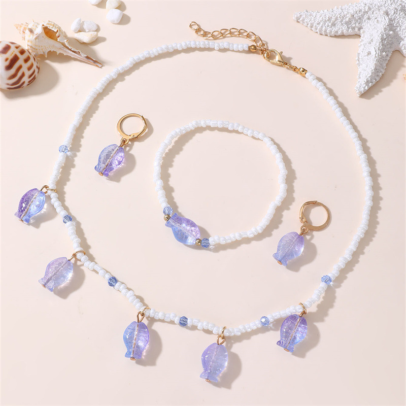 国境を越えた欧米の子供のアクセサリーの青い真珠のネックレスのブレスレットの耳の指輪の小さい魚の尾のアクセサリーのセット