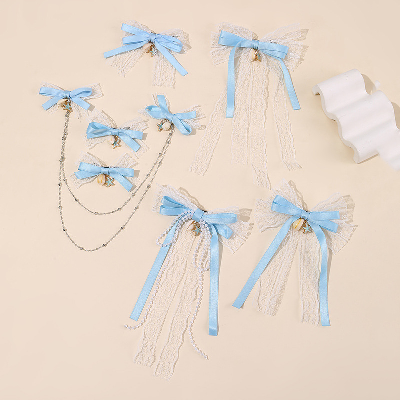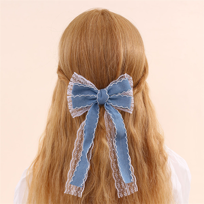 レースの蝶結びのヘアピンの蝶結びの短いスプリングは青いリボンの甘い少女の馬尾を挟んで女性のアクセサリーを挟みます。